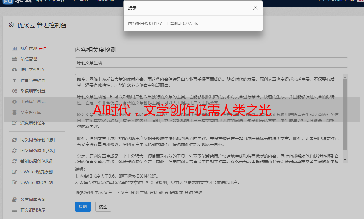 优采云 发布时间: 2024-01-23 22:41身为联续几十年来专注于文字创作的专业作家,面临逐渐进步的人工智能科技,不少朋友对其是否可能取而代之倍感忧虑。在此,我想告诉大家,尽管 AI 具备优异表现,但在文学领域,具有丰富经验的创作者仍是不可或缺的存在。