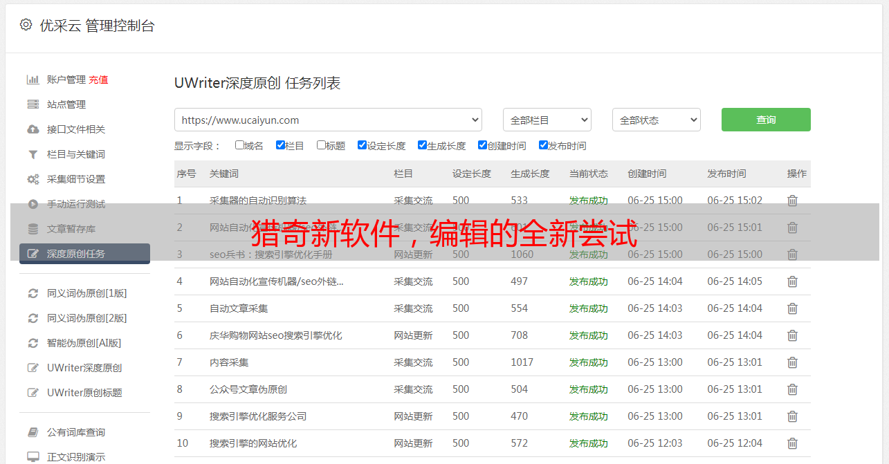 作为编辑,我时刻注意并关注热点话题与流行趋势。某日,获取一条重要线索,得知某公司已研发出可实现大量文章采集功能之软件。我对此感到非常好奇,便决定试用此新颖工具。