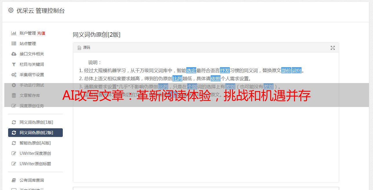 优采云 发布时间: 2024-01-24 11:241.什么是ai改写文章?