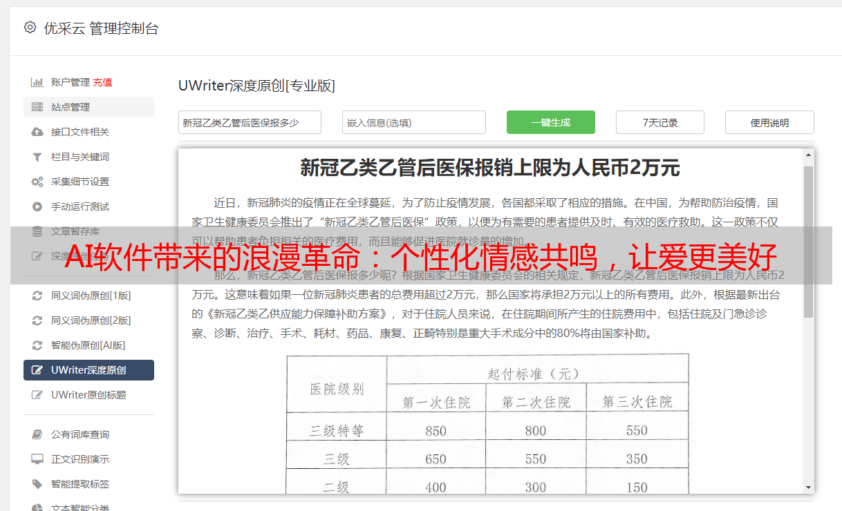 优采云 发布时间: 2024-01-25 04:08随着科技日益进步,人工智能软件已经深入我们的日常生活,并已在商业及医学方面崭露头角。近期,这种软件也涉足到了浪漫场景之中。AI软件提供的浪漫文本作为一种新颖服务,凭借其特有的吸引力,日益受到大家的喜爱。