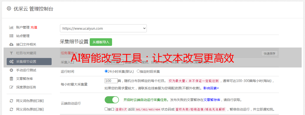 优采云 发布时间: 2024-01-26 01:37尊敬的用户,您好!非常感谢您关注AI智能改写工具,这是一项基于人工智能前沿技术开发的应用服务,致力于提高文本阅读体验并使其更为流畅自然。接下来,我们将为您解读该工具的特点及使用方法。