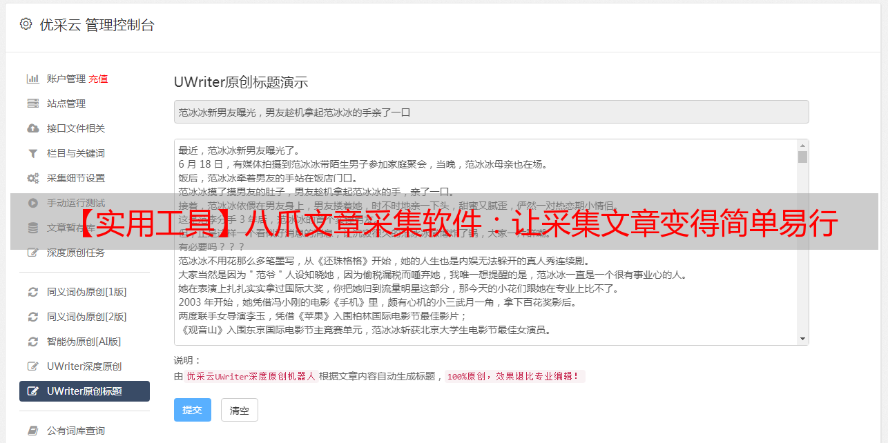 近期,我深度试用了八爪文章采集软件,深深体会到其为生活和工作带来的便捷和高效。无论在日常还是学习过程中,这款软件都无疑是非常有用的好帮手。在此,我诚挚地向大家推荐八爪文章采集软件,我坚信,只要您尝试使用,定能获得如我一般的美好体验!