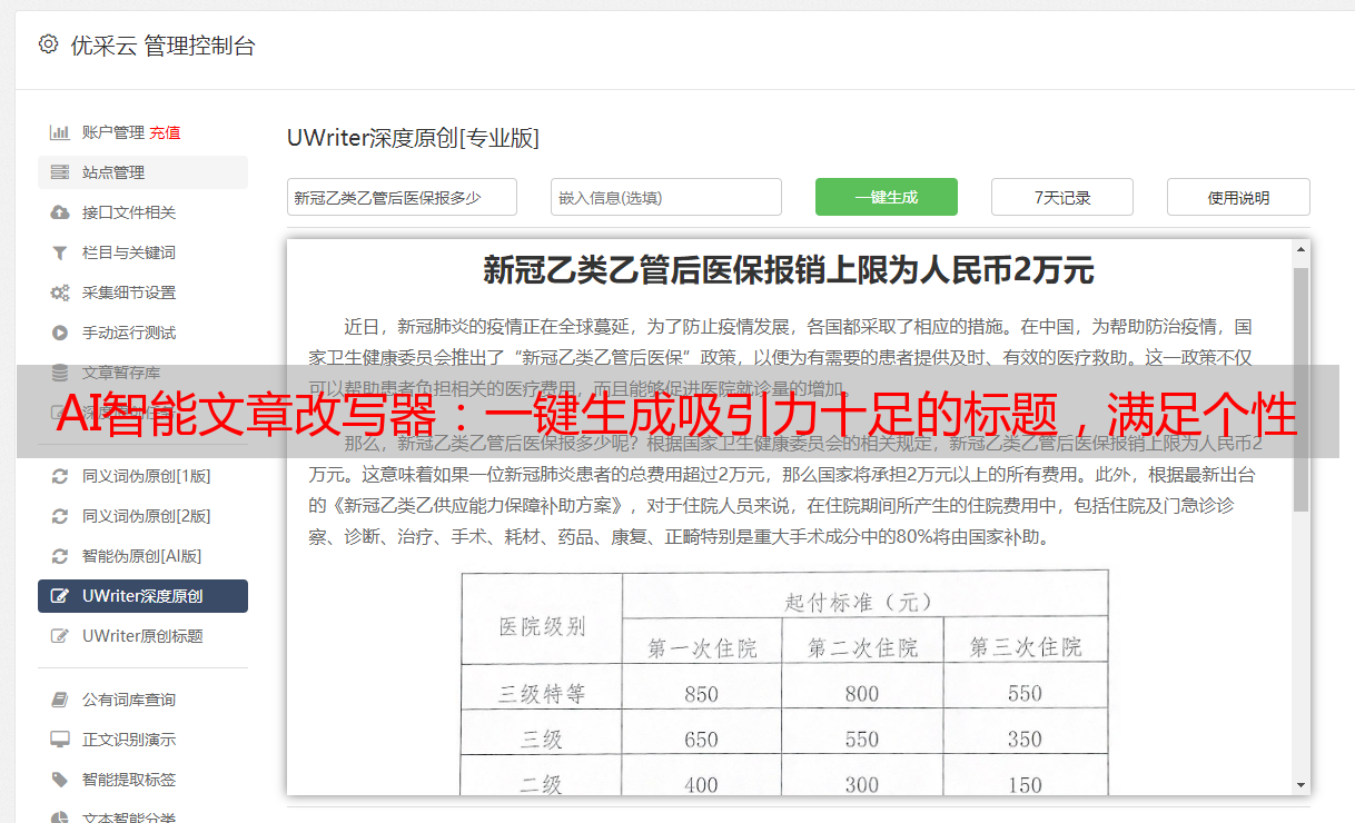 优采云 发布时间: 2024-01-26 13:461.次世代写手:ai智能文章改写