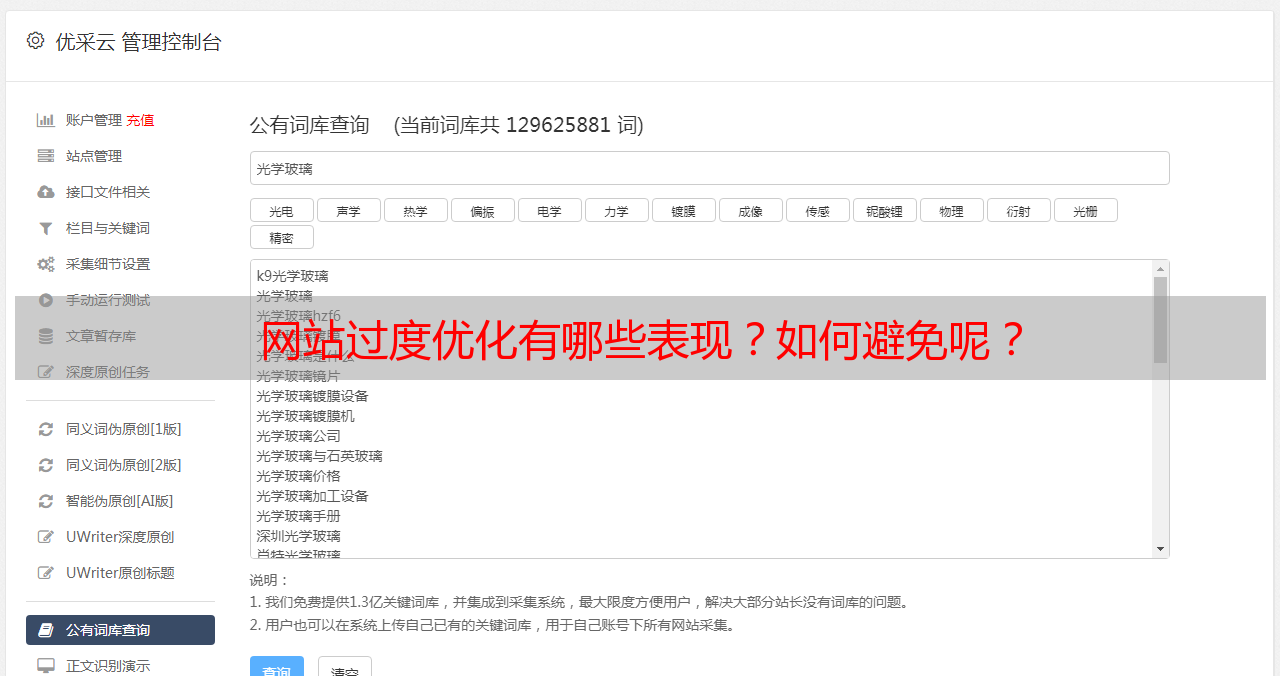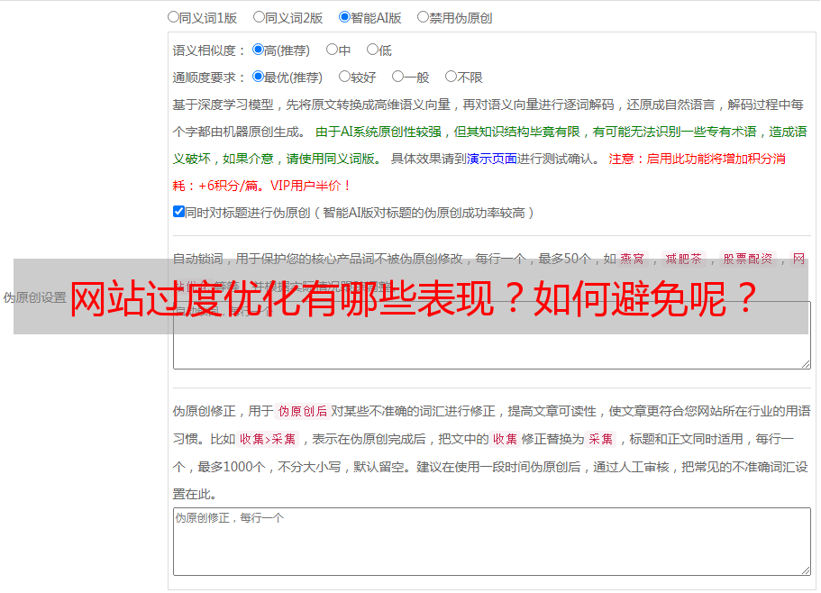 网站的过度优化是指使用其认为正确的内容对网站进行优化,并且网站留下的痕迹过于明显,因此搜索引擎认为该网站是垃圾邮件网站. 如果以这种方式优化网站,不仅将无法提高网站排名,而且甚至会面临成为K-station的风险. 网站过度优化有4种具体表现形式: