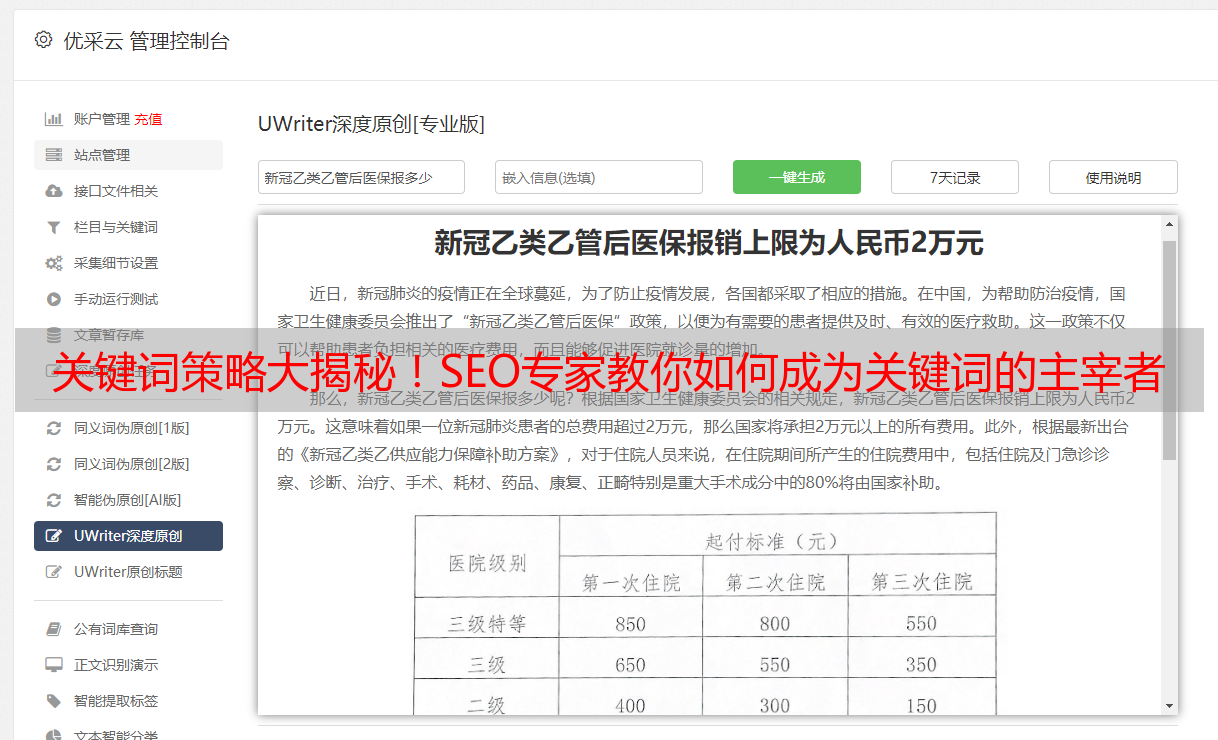优采云 发布时间: 2024-02-03 20:29在这个信息洪流中,关键词对网站优化和排名显得尤为关键。我是一个资深的 SEO 专家,今天为大家揭晓如何选择有效的关键词,助你在这一领域傲视群雄,成为关键词的主宰者!