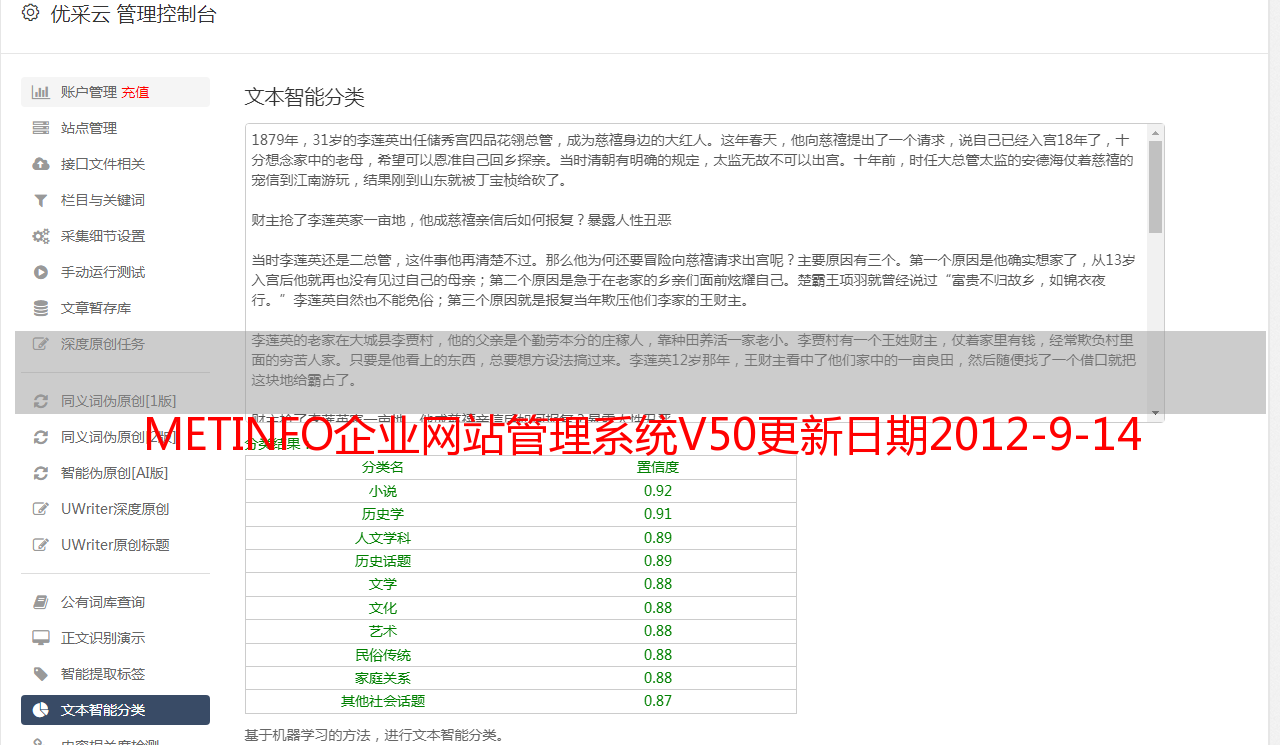 METINFO企业网站管理系统V50更新日期2012-9-14