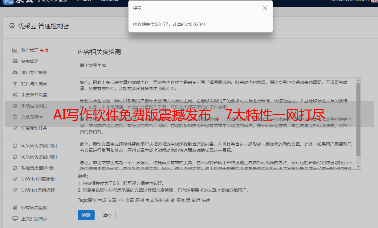 优采云 发布时间: 2024-02-10 10:45AI写作软件免费版正式发布,这无疑是打破新闻传媒业现状的一次突破。身为一名资深记者,我荣幸能够参与到本次试用中体验这款强大的新工具。使用期间,我切实体会到了这款软件提供的便捷性和效率提升。接下来,我将从7大部分详细介绍该款软件的特性及优点。