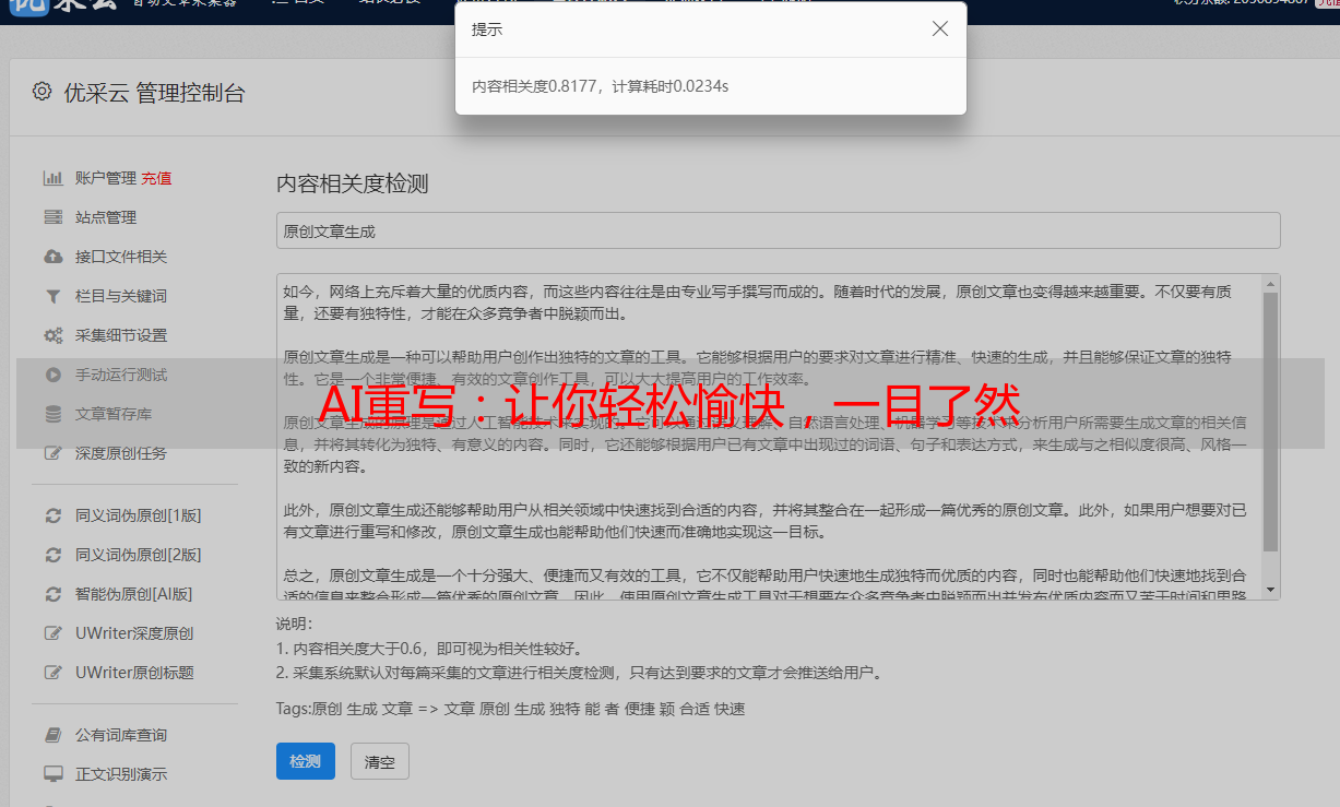AI中文文章重写具备显著的语言表达、文章构造、内容充实、细节描绘等优点。同时,所呈现的事实质量与准确程度增强了其可靠性。不论是理论、专业知识、个人经验或事实等层面, AI中文文章重写皆具价值,为读者带来益处。此外,脱俗的幽默手法赋予文章独特魅力。故,选择采用AI技术进行中文文章重写不仅可明辨真伪,还可享受优质的阅读体验。