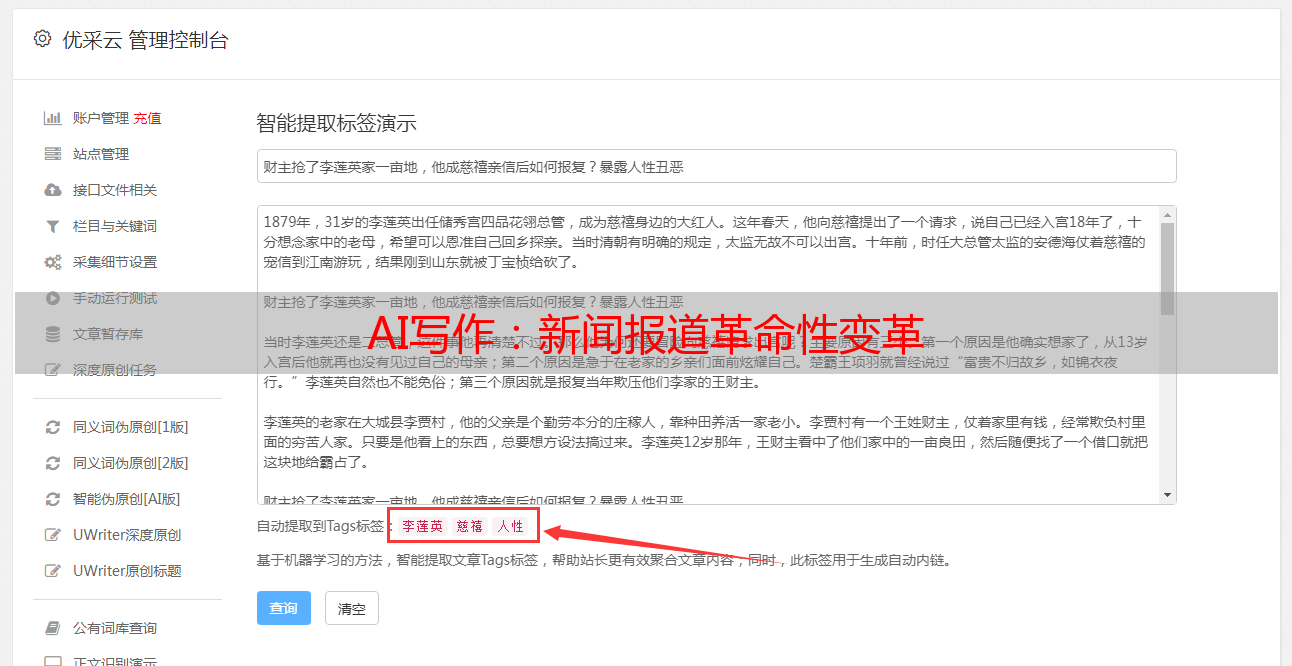 优采云 发布时间: 2024-02-11 17:30在当今科技日新月异的时代,人工智能写作正在成为传媒领域不可小觑的新生力量。在此,我们从10大维度解析人工智写作对新闻媒体的潜在影响力。