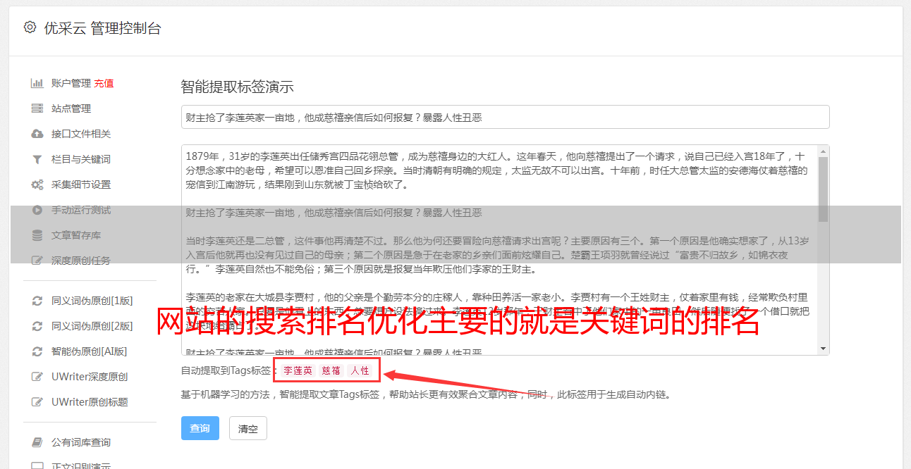 那是因为你太喜欢堆叠了。你明明可以网站optimize,但是你都是在做网页优化,所以你优化了一个页面。之后,百度只好在首页给出了答案。毕竟,主页信任。度好,现在规范来了,如果字数太多,需要去中心化页面优化。 关键词规划是网站营销规划的重中之重。中小企业如何选择关键词网站SEO优化?根据你的产品或服务的特点,如何关键词我的很重要。我们通常将关键词 分为不受欢迎的关键词 和受欢迎的关键词。即使人气关键词排在第二和第三页,每天也能获得大量流量。但是如果是很冷门的关键词,就算安排好了,每天也只有很少的流量。那么我们应该只做流行的关键词排名优化吗?其实在优化我们客户网站SEO的过程中,冷门的关键词虽然流量不高,但是他的转化率却很高。但是,一些所谓的热门关键词花费了大量的精力和费用,流量增加了,但转化率并不高,所以关键词挖矿后如何评价也很重要。百度指数。百度指数可以大致分析关键词的热度。