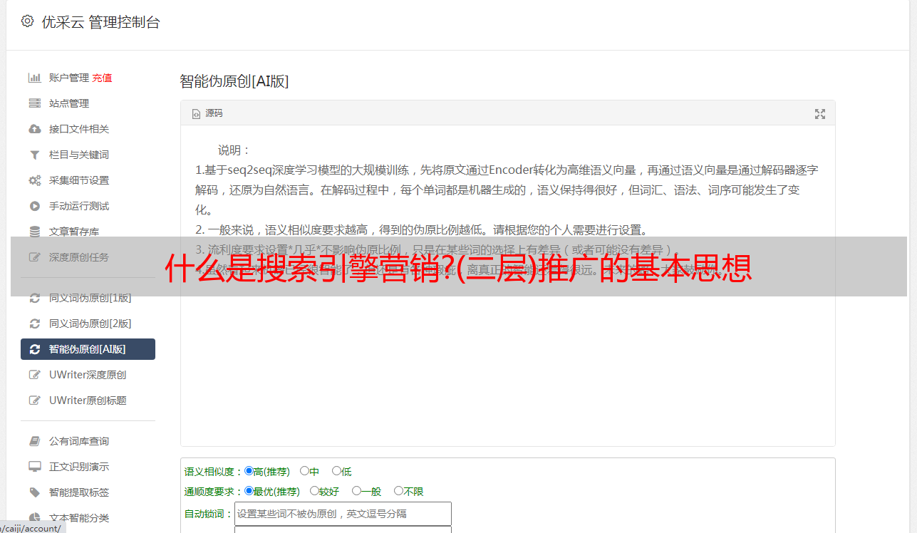 优采云 发布时间: 2021-06-23 23:24什么是搜索引擎营销?(二层)推广的基本思想