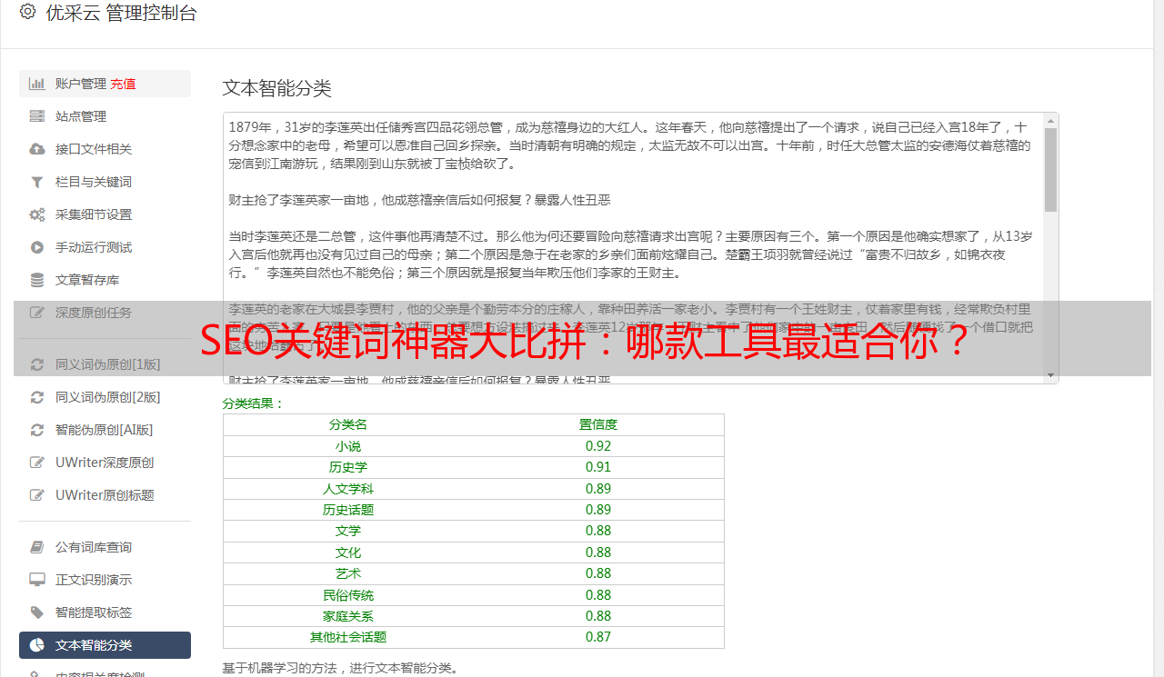 优采云 发布时间: 2024-02-15 05:07关键词采集工具对各位搜索引擎优化领域从业者来说,无疑堪称神器。今日,身为一位有经验的SEO专家,特为各位挑选并对比几款热门的关键词采集工具,助您寻得最为合适之选。