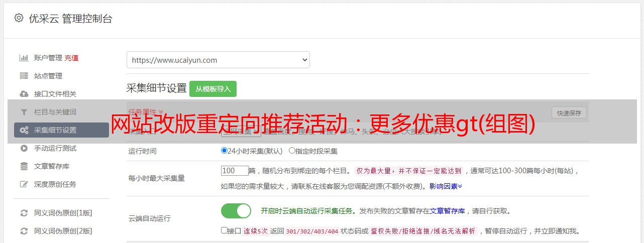 优采云 发布时间: 2021-06-24 01:48网站改版重定向推荐活动:更多优惠gt(组图)