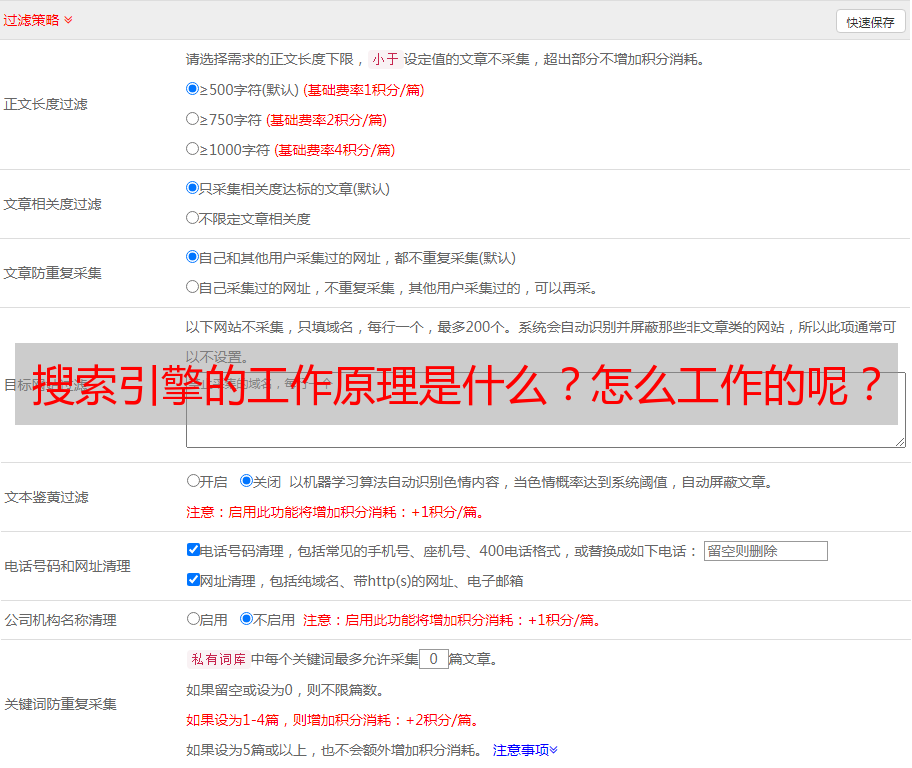 2.Screening:什么是筛选?筛选也称为过滤。蜘蛛会从他们的临时数据库中筛选抓取的网页,并丢弃低质量、重复和无用的内容。 , 保留部分优质内容。