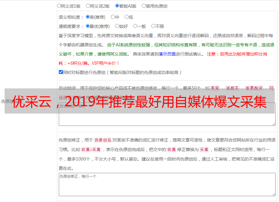 AI伪原创,建议先进行原创测试,根据测试结果修改,尽量不要改动原句。这个功能非常好用,媒体帮推荐每个自媒体人都可以采集。