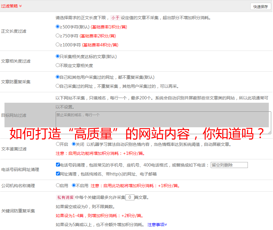 优质网站内容,即网站有优质内容。这些内容,无论是文字,还是图片,或者视频,或者其他形式的呈现,都必须能够解决用户的问题。满足用户的需求。同时,要优化搜索引擎的排名。