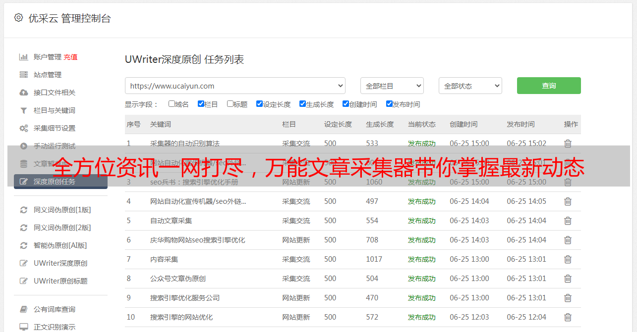 尊敬的用户,我们的万能文章采集器将帮助您掌握各行各业的最新动态,如时事政治、经济金融、科技创新、娱乐趣事以及体育赛事等各类资讯,满足您对各种事件的需求。