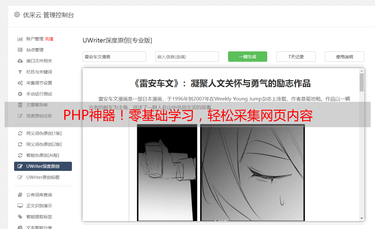 优采云 发布时间: 2024-02-25 14:45本文旨在与您分享一种使用PHP完成文章采集的简便方法。借助于PHP卓越的强大功能及高度灵活性,即使面对无规则的数据结构,也能实现所需的文章内容采撷。