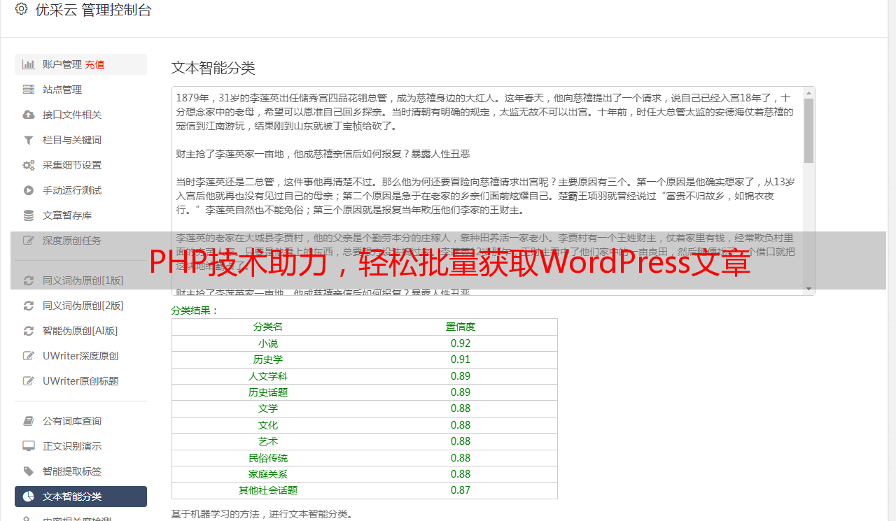 优采云 发布时间: 2024-02-25 23:14本文旨在分享如何灵活地使用PHP技术,批量获取WordPress网站文章,让您能够独立获取所需信息。