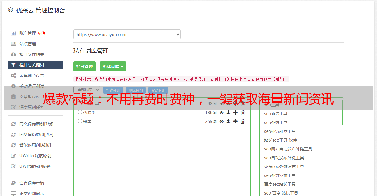 优采云 发布时间: 2024-02-26 01:29最近我发现了一个令我庆幸的事儿,那就是开始使用织梦采集今日头条文章的功能。作为新闻编辑,每天都需要从各种渠道收集大量的信息来满足读者们的需求,费时又耗神。然而,自从使用了这个简便易用的工具以后,我在工作中的效率得到了极大地提升。