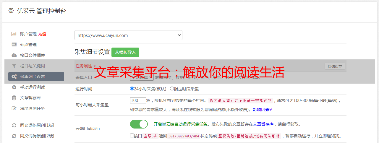 优采云 发布时间: 2024-02-26 04:48在现今高速发达的信息化社会中,我们时刻沉浸于大量文字信息之中。身为写*敏*感*词*好者,我常常寻觅各类文章以汲取灵感与素材。然而,互联网上好文难觅,让人苦恼不已。直至偶然间,我邂逅了一款奇妙至极的工具—文章采集平台。