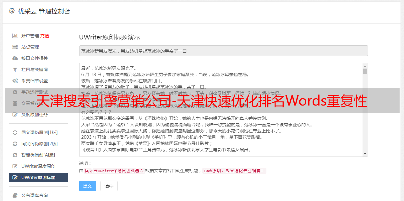 优采云 发布时间: 2021-06-24 22:10天津搜索引擎营销公司-天津快速优化排名Words重复性