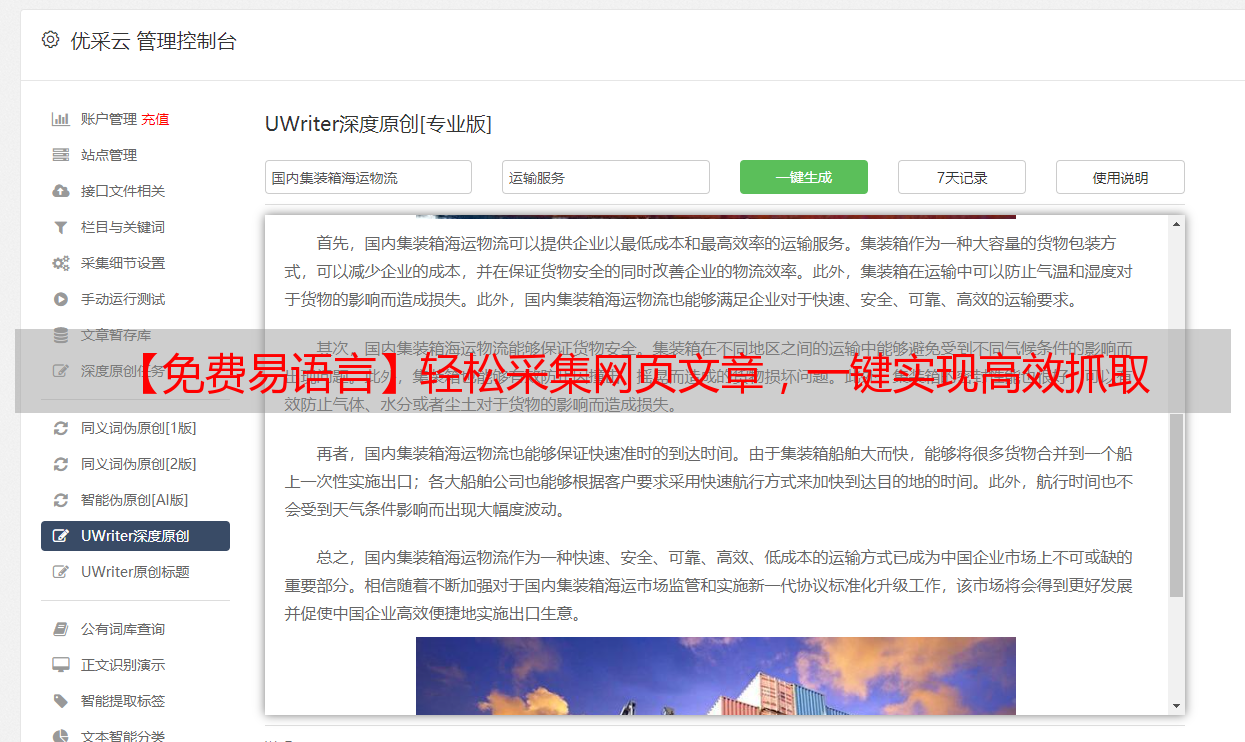 推荐这版易于使用的网页文章采集代码哦~它可以帮您轻松节约宝贵的时间和精力。只要经过简单设定,轻轻点击即可实现一键式采集,丰富而有价值的信息一网打尽无压力。相信会对您的工作效率产生积极影响哦!