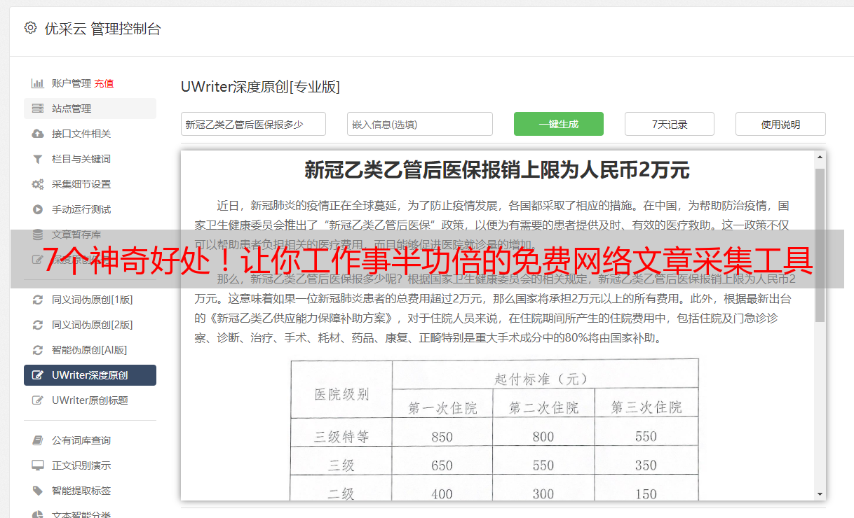 作为一位网文作者,深感在搜索、摘录、归集大量信息过程中,付出之艰辛与耗费时间的漫长。近期,我有幸遇到了一款神奇宝贝般的免费网络文章采集系统——这不仅大大减轻了我的负担,同时还提高了我的工作效率。今天,我希望能将这份方便与各位共享。