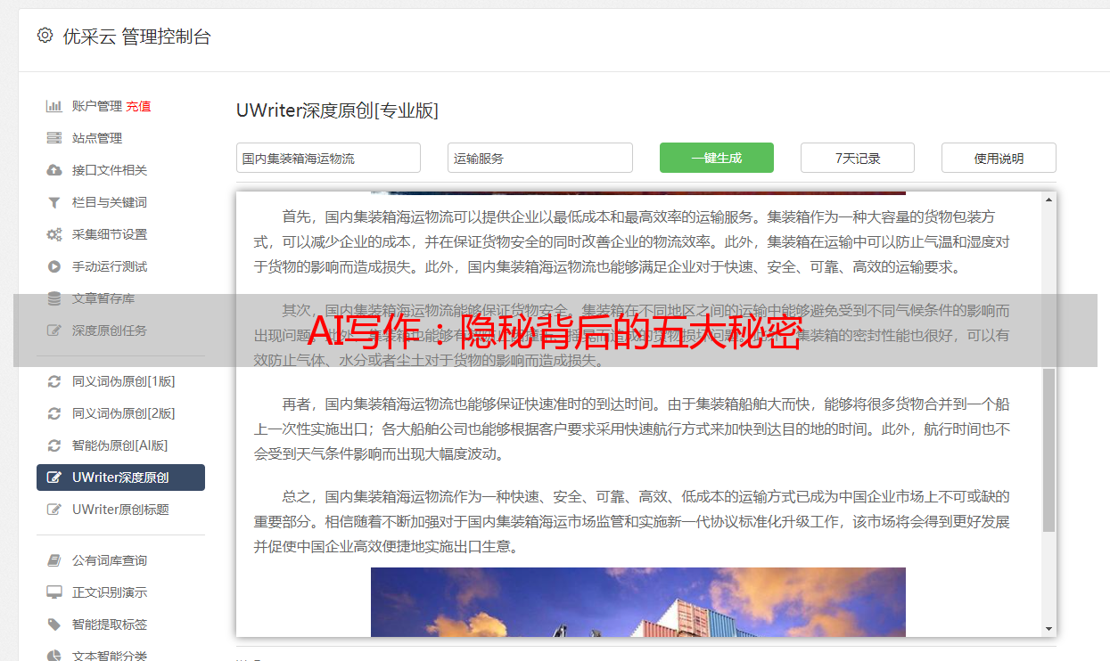 优采云 发布时间: 2024-02-28 14:58信息化高度发展的今天,我们得以透过社交媒体及新闻资讯等多种途径获取各类信息,更可享受到在线AI写作提供的高品质文章所带来的便捷。但在这份便捷背后,我们亦有必要明晰其中一些隐秘之处。
