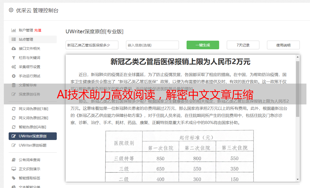优采云 发布时间: 2024-02-28 16:19在知识爆炸的今天,我们每日需接触大量文本资料。对许多人而言,理解及甄别这类文本颇为耗时费力。那么,是否存在高效提取信息的途径?答案为然,即ai中文文章压缩技术。