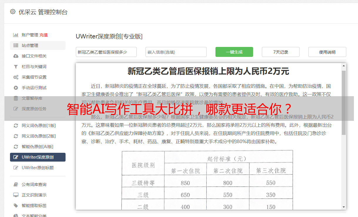 优采云 发布时间: 2024-02-28 20:25当前人工智能写作技术在各行各业广泛应用。为协助广大用户选购适合自身需求的写作工具,我们展开详细对比测试得出测评结论如下,望能助您一臂之力。