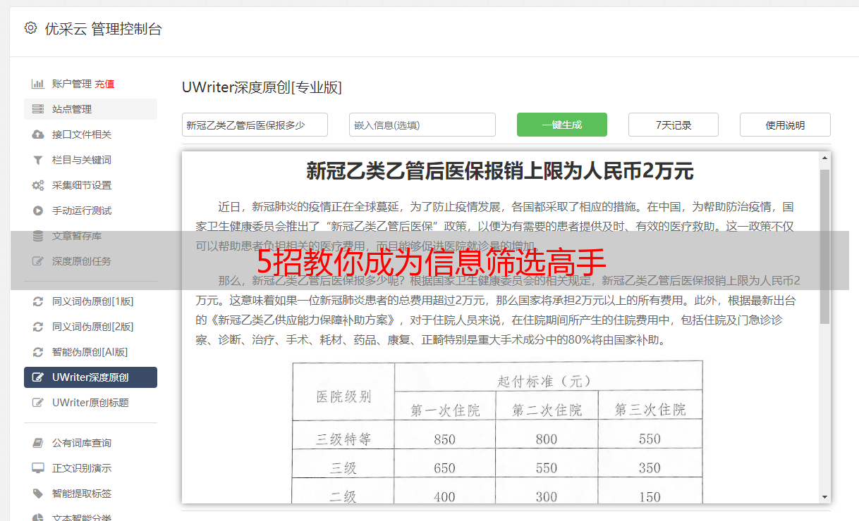 优采云 发布时间: 2024-02-29 01:58在众多信息中提取有效资料离不开文章筛选技术,本篇文章就此提供系列操作指南。