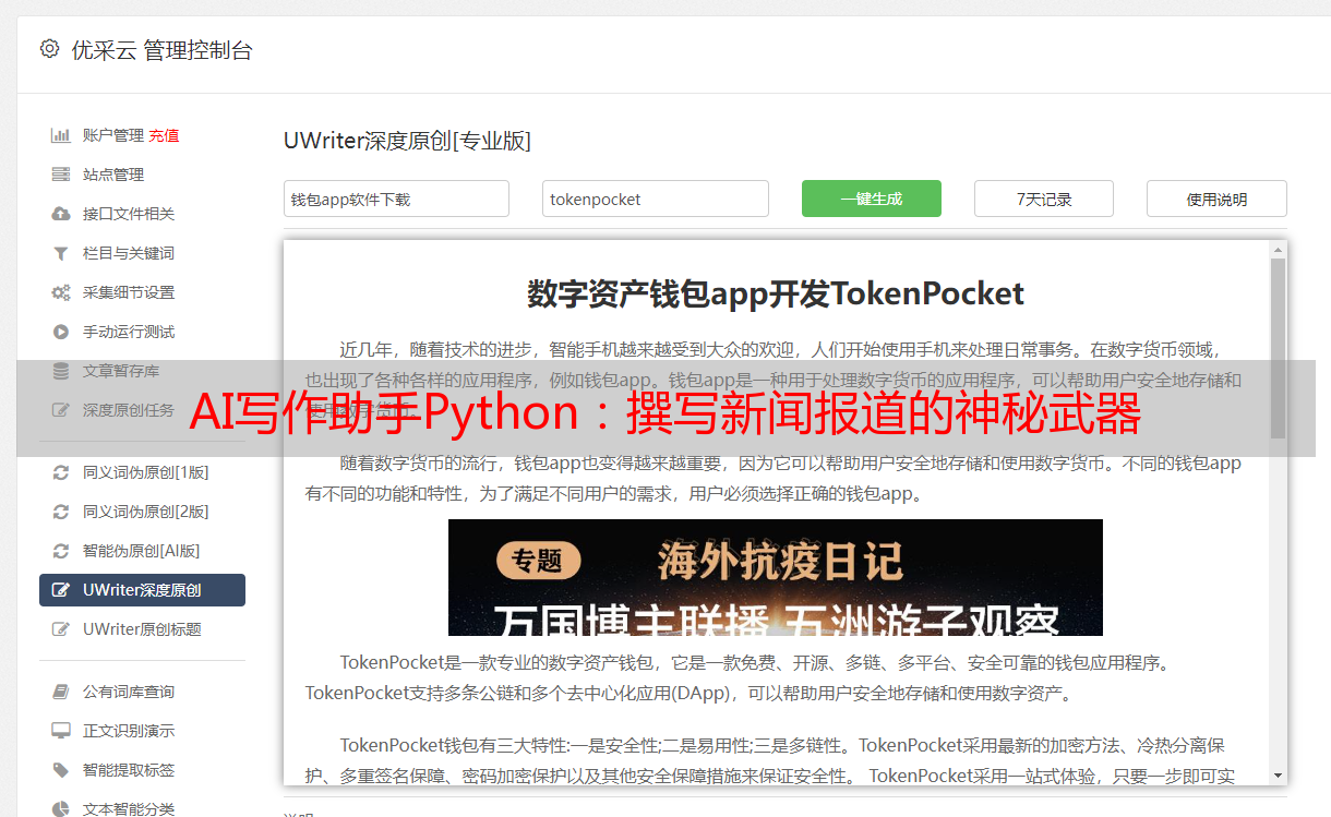 身为一位经验丰富的编辑,我经历过许多难以忘怀的夜晚,以最快速度赶往各个重要事件现场,为广大读者提供最前沿的新闻信息。然而,自从尝试使用AI写作助手Python之后,我如有神助,熟练掌握了撰写富有吸引力的新闻报道技巧。