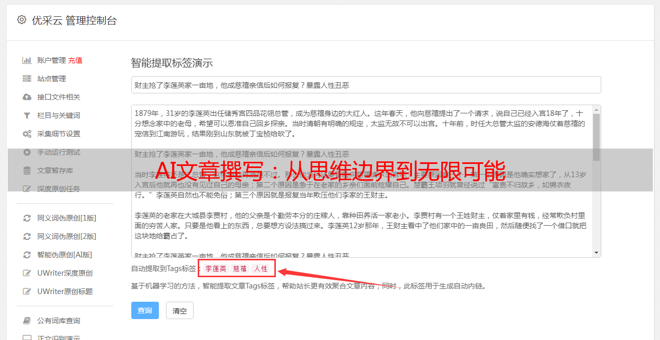 优采云 发布时间: 2024-02-29 10:34一、AI 文章写作:让想象力飞翔