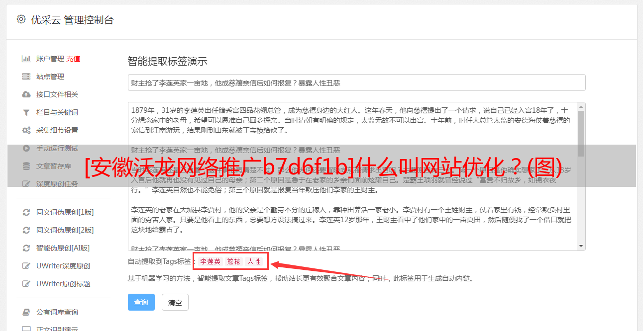 优采云 发布时间: 2021-06-25 01:12[安徽沃龙网络推广b7d6f1b]什么叫网站优化?(图)