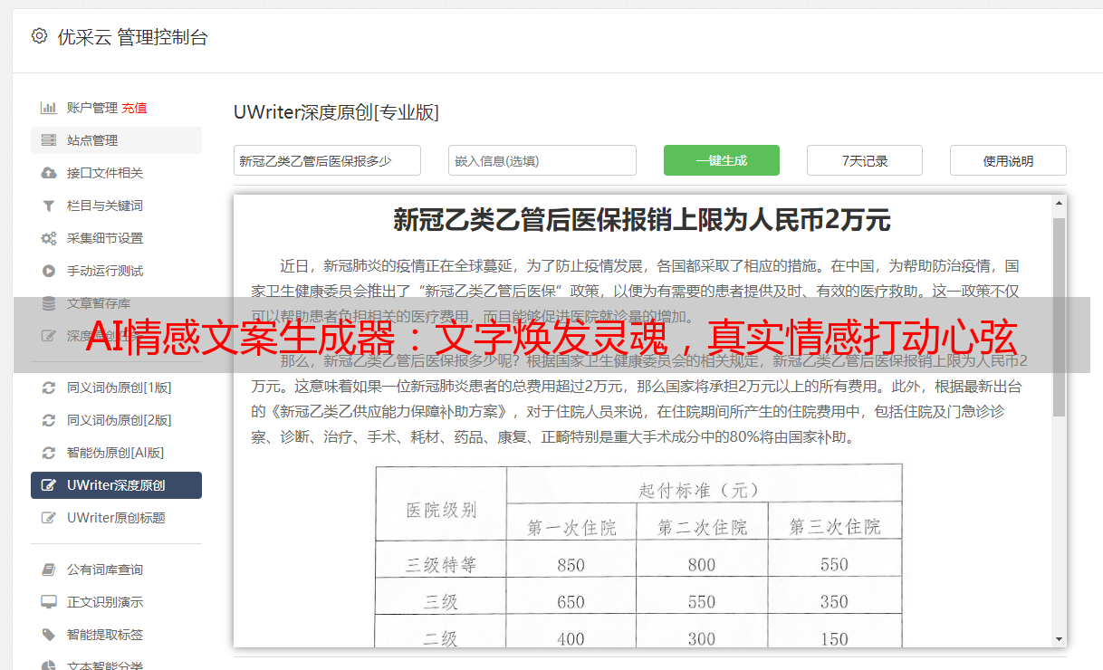 体验AI情感文案*敏*感*词*后,我深切感受到了文字之力量。这些文字能够触动人心灵,引发情感共鸣,承载思想传播,已成我们自身表达关键工具。