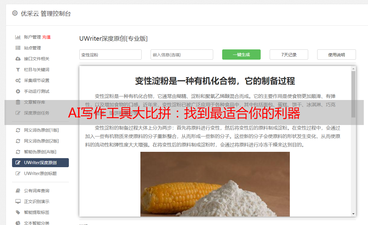 优采云 发布时间: 2024-03-01 02:30本文对常用的几个AI伪原创文章*敏*感*词*进行了对比评价,旨在帮助用户找到最合适的工具。