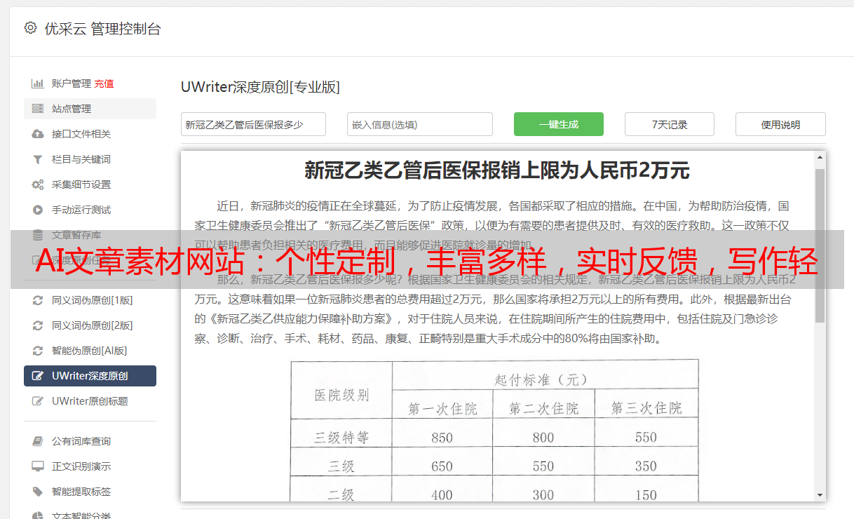 AI文章素材网站:个性定制,丰富多样,实时反馈,写作轻松有趣