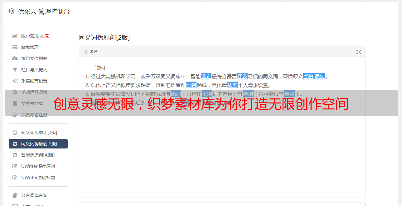 优采云 发布时间: 2024-03-03 12:52织梦素材文章采集中,我们是具有创新力的创作灵感提供者,为各类创作者打造丰富而全面的素材库 steaming。无论您是文学界的大家、画坛新锐、摄影大师,或是设计领域的精英,均能在此汲取创意所需之灵感。接下来,我将为您详细解析织梦素材文章采集的显著特色及竞争优势。