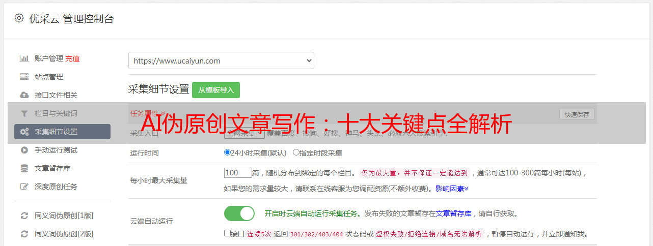 运用AI技术进行伪原创文章创作时,需精心调整生成文本规模与主题设定。过长或过短皆不可取,应在满足读者需求并确保文本质量的基础上,恰当选取符合个人需求及目标读者定位的主题。