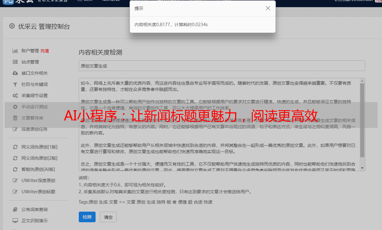 AI小程序依托强大运算能力及深度学习模型技术,可根据输入关键字与主题,迅速生成颇具魅力且引人入胜的新闻标题,使其更具创新性、思维张力并有效提升阅读效率与文章点击量。
