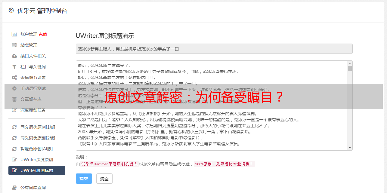 优采云 发布时间: 2024-03-03 22:15在当今信息轰炸的环境下,我们每日均会面对海量信息源,如新闻媒体、博客平台及社交媒体等。而在这众多及时传播的消息中,原创文章无疑占据极大比重。何谓原创文章?其缘由为何备受推崇?今日,我将以资深编辑角度,解读其中隐含之深意。