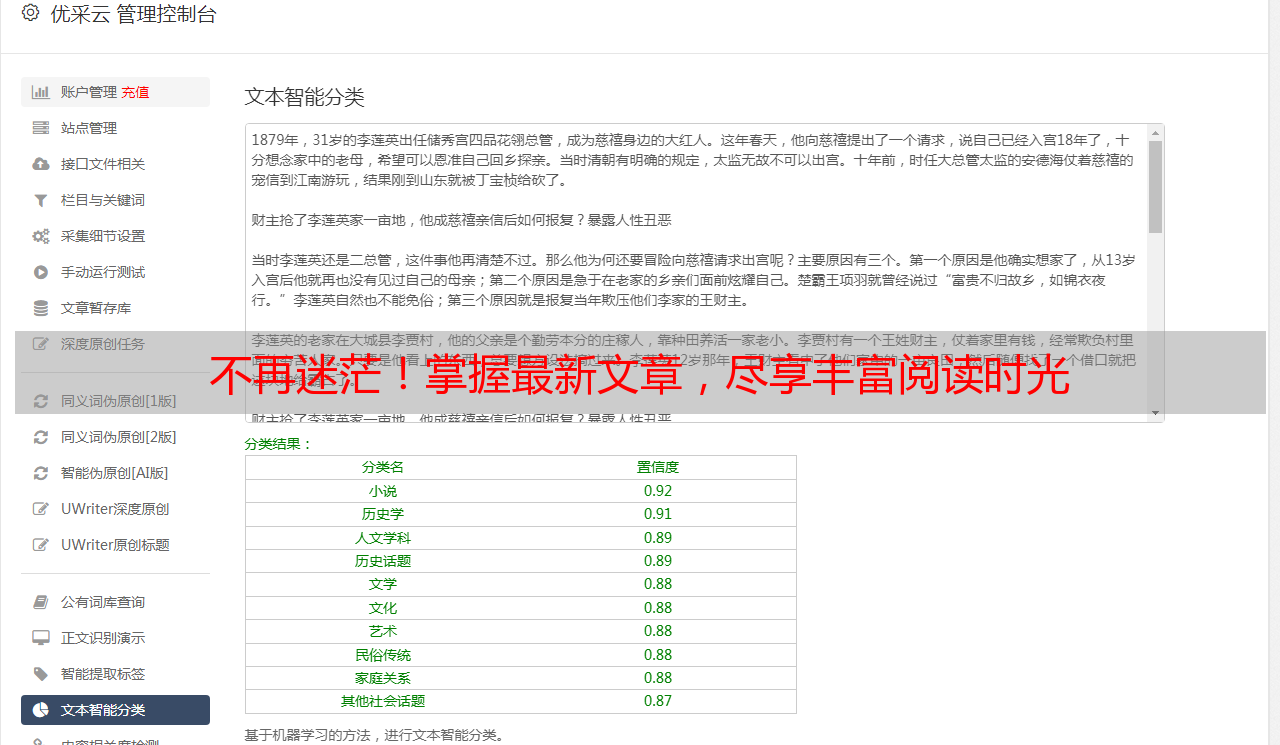 优采云 发布时间: 2024-03-04 16:35作为博闻强识之读者,本人始终探寻能满足我需求的网络文章集锦站点。在深入研究探索之后,本人终于找到了堪称完美之选的理想平台。现今,我已能够时时掌握众多心仪文章,享受每日的丰富多姿的阅读时光。