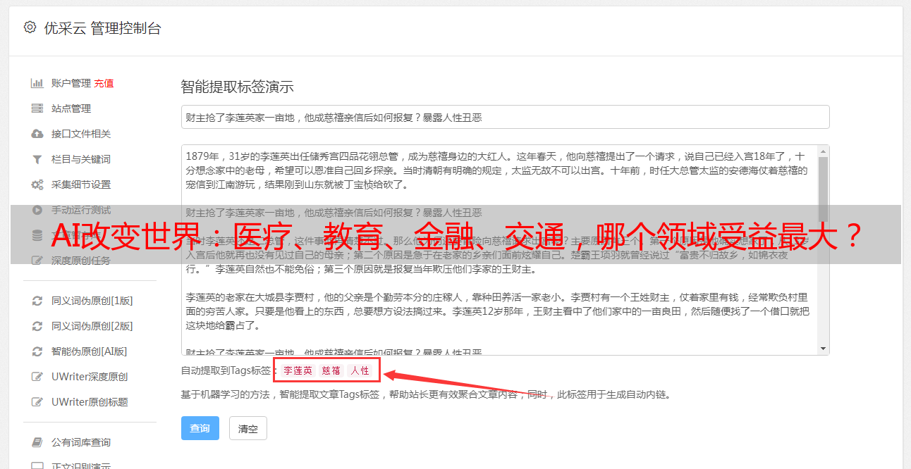 优采云 发布时间: 2024-03-04 23:50人工智能(AI)以其深入改变当今科技领域之巨大活力成为了焦点话题,有力地驱动全球发展。在诸如医疗、教育、金融和交通等领域的具体实施过程中,AI光芒四射,展现了不可忽略的潜能和可能性。