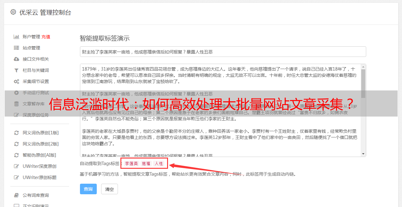 信息泛滥时代:如何高效处理大批量网站文章采集?