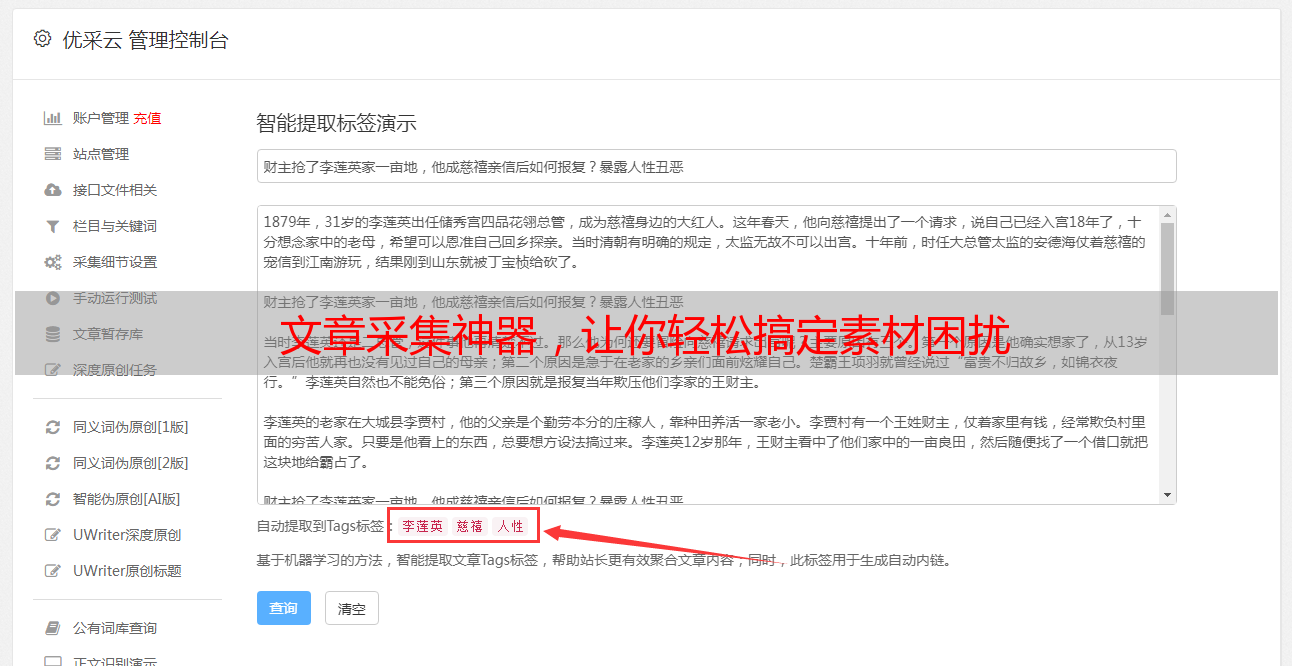 在线文章采集器提供多元化的写作工具,囊括文本编辑器、图像编辑器、图表制作等软件,辅助我更准确简洁地表述观点,使得文章更具吸引力。