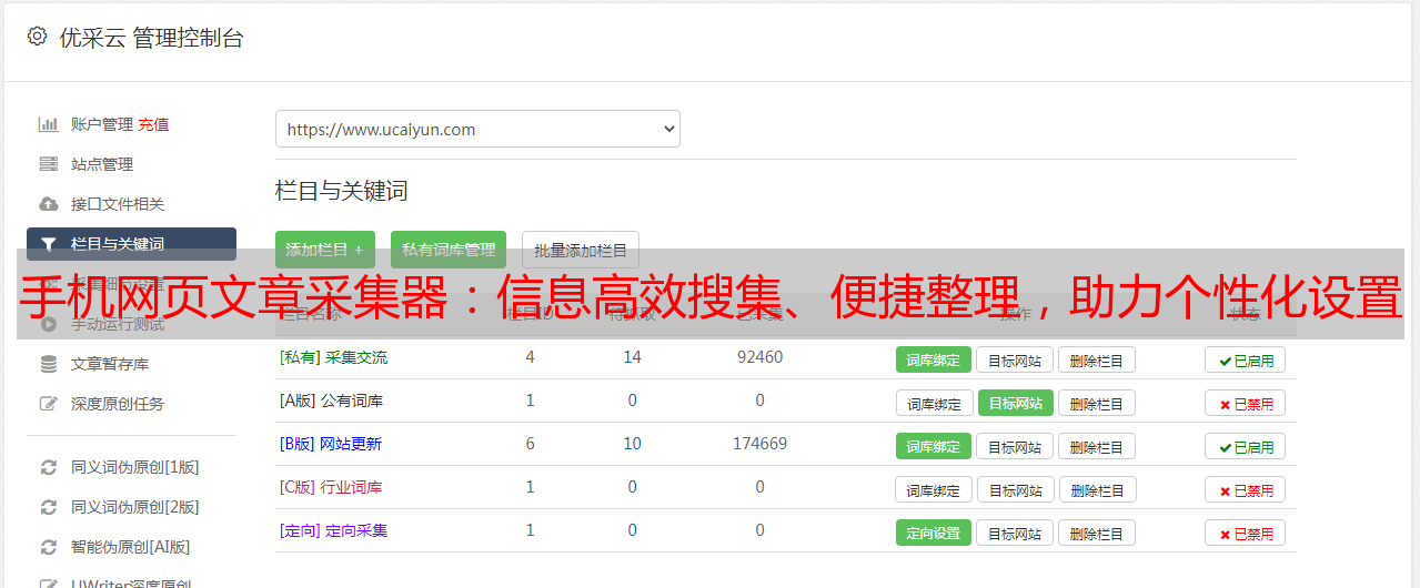 优采云 发布时间: 2024-03-07 10:33本文着眼于手机网页文章采集器的优点及应用层面分析。此款高效、实用的工具因其优势显著,日益受到广大用户所亲睐。这款利器为个人获取及管理信息提供了新途径,已然成为当代生活中举足轻重的组成部分。下文将从多方面深度剖析该款软件的卓越性能及其实际运用之处。