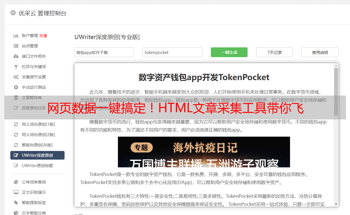 随着网络科技的发展,我们每日都要访问形形色色的网站,从中获取所需的各类资讯。但手工复制并粘贴这些信息显然耗时且繁琐。为了改善这一状况,众多精通软件开发与科技探索的人才研发出各种HTML文章采集工具,助力用户自动提取网页中的关键信息。