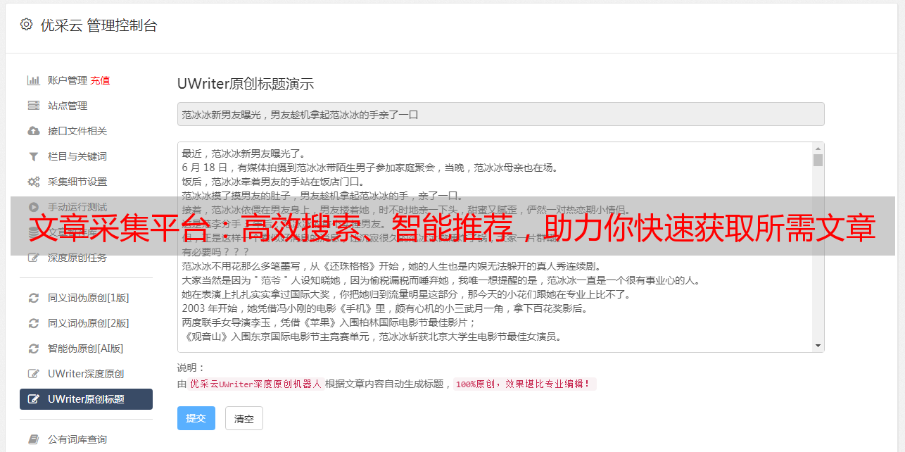 优采云 发布时间: 2024-03-08 08:411.什么是文章采集平台?