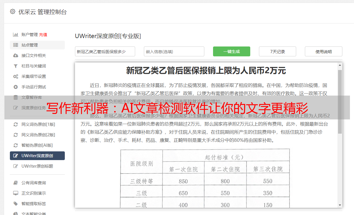 优采云 发布时间: 2024-03-08 22:18伴随着互联网的崛起,写作已深入每个人的生活之中。无论是职场的文本创作,亦或是社交媒体资讯分享,一流的书写技巧都至关重要。尽管如此,写作对许多人而言并非易事。面对海量信息与需求,往往会不知所措。幸亏科技发达,如今涌现出高效且智能化的工具——AI文章检测软件,使写作变得更为轻松。